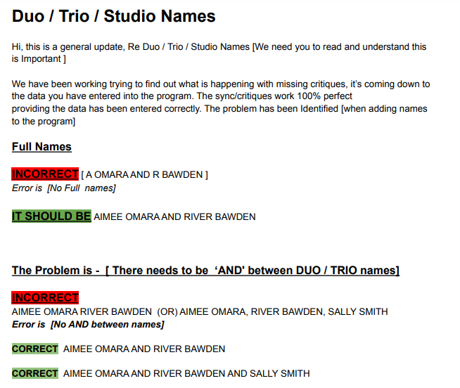 Critique folders are automatically generated only once, at 12:01 a.m. on the opening day of the competition. If the competition is reopened or accessed after the first day, the folders will not be regenerated, and you will need to manually distribute (via email or other means) the critiques to the performers.